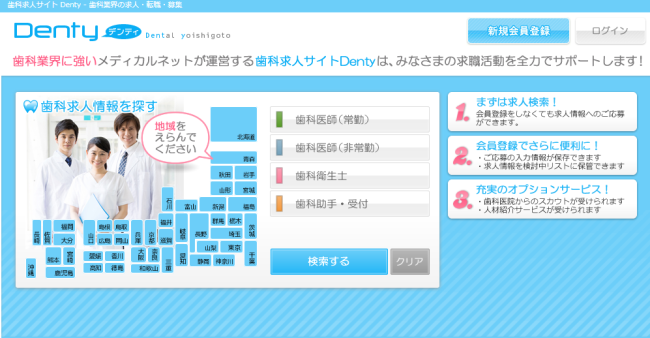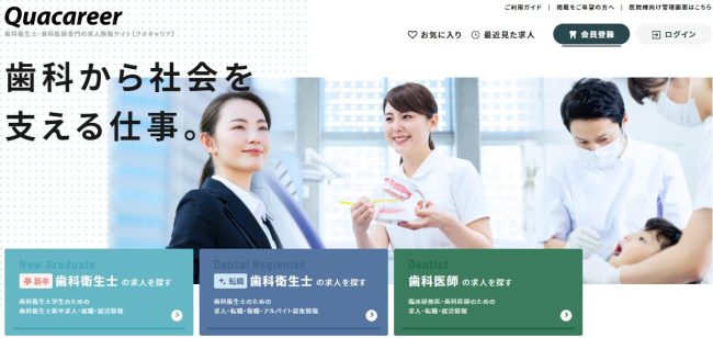 現役の歯科医療者や経験者の方が運営に携わっているということもあり、歯科業界での仕事を考える人の視点で求人情報を掲載されているということもあり、歯科衛生士向けの転職サイトを探している方向けにはオススメの転職サイトと言えそうです。
