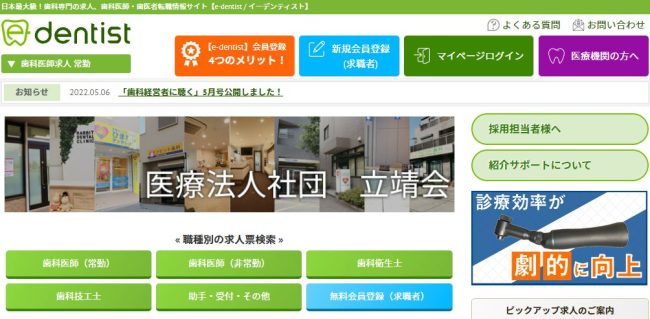 求人情報についても詳しく記載されており、医院の経歴やユニット、設備、医院の関連情報等詳しく掲載されている所も特徴です。