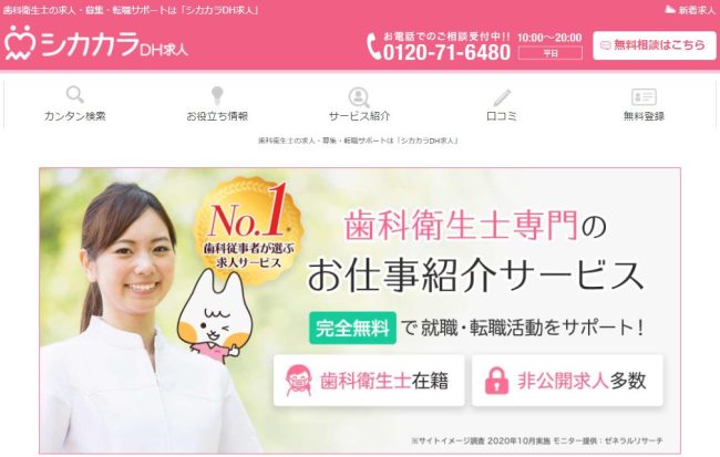 | 【おすすめ第6位】 シカカラDH求人 歯科衛生士専門のお仕事紹介サービス!非公開求人を多数保有 |