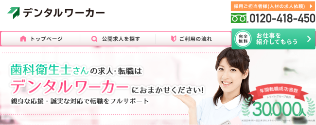 デンタルワーカーは、歯科衛生士さんの求人・転職に力を入れた転職サイトです。