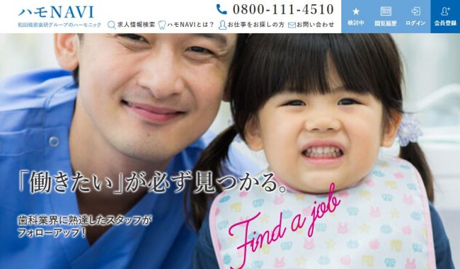 | 【おすすめ第8位】 ハモナビ(ハモNAVI) 日本最大級の⻭科求人専門情報サイト!業界に精通した専任エージェントが全力でサポート |